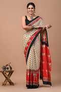 CRAFTS MODA Pure HANDLOOM Soft Cotton Mulmul Saree. Feel Premium High Quality Fabric Experience With This Product Product. These saree are perfect for occasions and events anytime of the day or night.One of the most graceful costumes made from unstitched fabric - the saree - the much loved choice for most Indian women can be worn in so many different ways. The saree and all its parts, the body, the pallu and the border, all of them play a significant role in the entire look. BLOCK PRINTING Sarees- Block printing was introduced to the Jaipur region of Rajasthan by the Chhipa community. This community was originally located in Bagru Village, an area now famous for its vegetable dye and mud resist (dabu) block prints. The art of block printing has been passed down for generations within families and communities and has branched out in recent decades to other regions such as Sanganer, just South of Jaipur. In traditional Bagru style block printing the recipes for the traditional plant-based dyes are developed within each family and kept alive from generation to generation. Note: Blouse shown in the image is only for shoot purpose actual blouse is same as saree fabric.