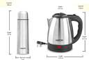 MILTON Combo Set Insta Electric Stainless Steel Kettle, 2 Litres, Silver and Flip Lid Thermosteel Hot or Cold Stainless Steel Water Bottle with Jacket, 500 ml, Silver Electric Kettle (2.5 L, Silver)