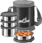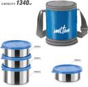 MILTON Expando 3+1 (4 Container, 200 ml, 320 ml, 320 ml, 500 ml) with Jacket, Blue 4 Containers Stainless Steel Office Lunch Box (1340 ml)