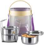 MILTON Gradient Tiffin 3 Stainless Steel Tiffin With Lifter 3 Container, 900ml, Purple 3 Containers Stainless Steel Office Lunch Box (900 ml)