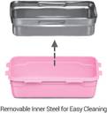 Colour: Pink; Material: Inner Steel, Outer Polypropylene; Package Contents:1 - Piece Mini Fun Treat Steel Tiffin Box (650 ml), Inner Container (120 ml); Dimension in cms (L x W x H) Outer Container (18 x 12.6 x 5.6), Inner Container (9.9 x 7.5 x 4.7)