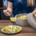 Made from durable quality steel, the functional and leak proof lid of the casseroles with an integrated handles allow easy grip which can be opened or shut with a simple motion and trap the heat effectively inside the casserole
