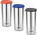 MILTON (Pack of 3) Stainless Steel Tumbler with Lid Set of 3, 530 ml Each (Lid Color May Vary) Glass Set Water/Juice Glass (530 ml, Steel, Multicolor)