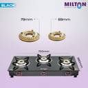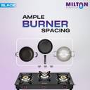 MILTON Premium Black Glass Manual Gas Stove (3 Burners)