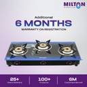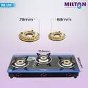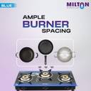 MILTON Premium Ignition LPG Stove - (ISI Certified, Door Step Service) Blue Glass Manual Gas Stove (3 Burners)