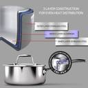 MILTON Pro Cook Triply Stainless Steel Sauce Pan with Lid Sauce Pan 18 cm diameter with Lid 2.2 L capacity (Stainless Steel, Induction Bottom)