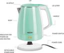 MILTON Riga Stainless Steel Double Walled Electric Kettle (1.5 L, Aqua Green)
