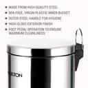 MILTON Steel Pedal Bin with Removable Inner Plastic Bin, 12 Litre, Silver Plastic, Steel Dustbin (Silver)