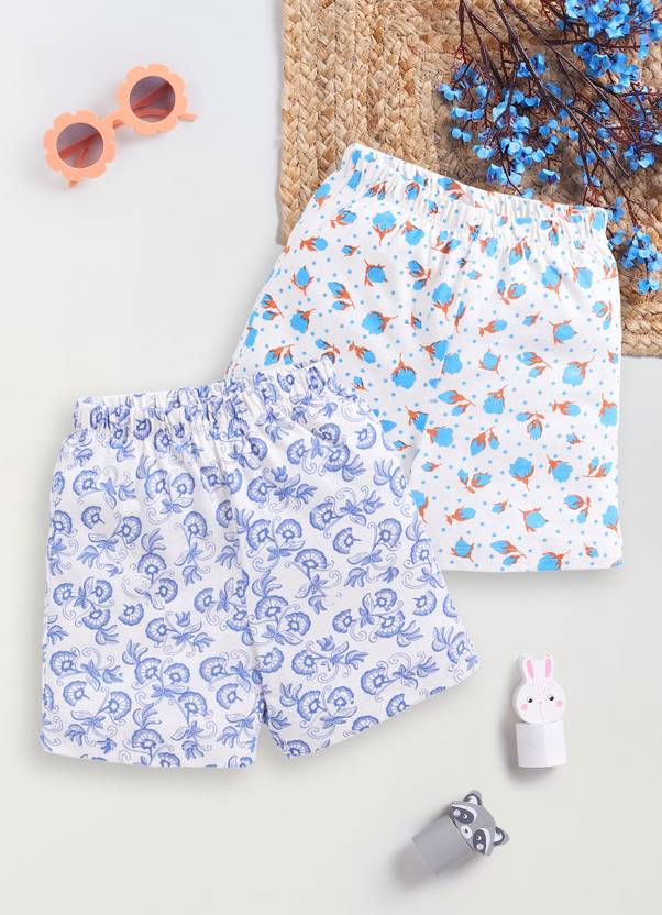 Short For Girls Casual Printed Pure Cotton (White, Pack of 3)