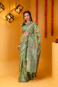 Border & Pallu details - { Border Color: Green} { Pattern: Floral } { Pallu Color: Green} { Pallu Work Type: Has Zari woven border and pallu and Tussel Work at the end }