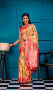 Mimosa Banarasi sarees embody the centuries-old tradition of Varanasi's craftsmanship. These sarees feature a lightweight, soft finish, ideal for weddings and special occasions, offering comfort without compromising luxury. Their intricate weaving and opulent silk fabric reflect the rich history of Banarasi sarees, making them a symbol of elegance and tradition. Styling a Mimosa Banarasi saree is simple yet elegant. Pair it with a trendy blouse, such as one with intricate designs or embellishments, for a glamorous look. Opt for a blouse with a modern neckline, like a deep V-neck or off-shoulder silhouette, to add a contemporary touch to this timeless attire.