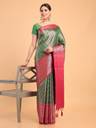 MIMOSA Woven Kanjivaram Art Silk Saree (Green, Red)