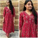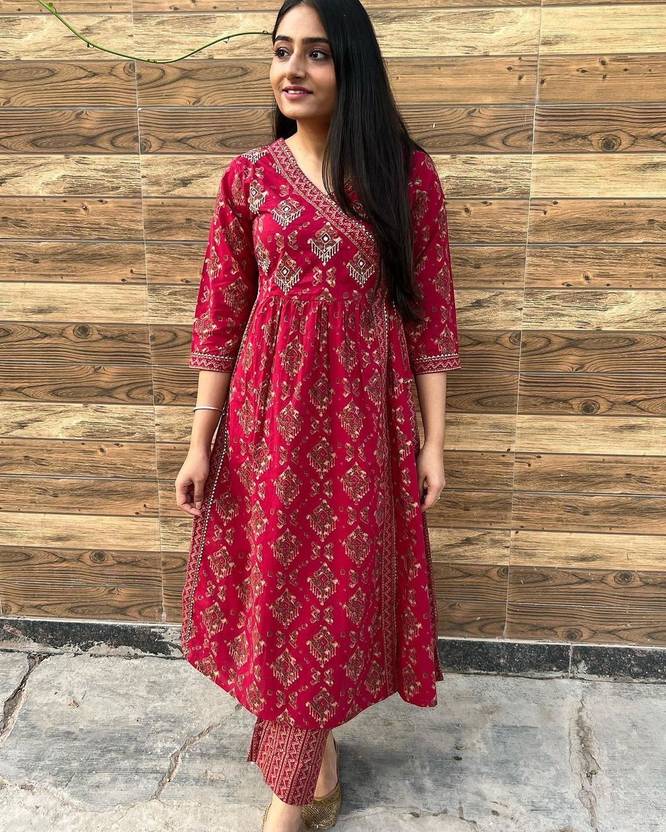 Premium Ajrakh Print rayon Angrakha Style Stitched suit set with pants.