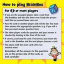 38030W Features: -Brain box all around the world.-Clever new memory recall game challenges players to memorize as many details as they can in just 10 short seconds.-Turn the timer over, concentrate on the card and try to memorize as many details of the picture as you can.-Roll the die to determine which question will be asked and quiz each other on what they remember.-Four wonderful themes will keep young minds engaged in this fast-paced game of concentration and detail.-Ages 8 and up.