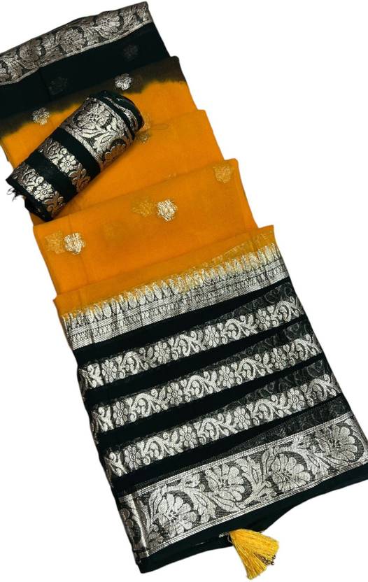 MINE CHOICE Self Design, Woven Maheshwari Viscose Rayon Saree (Gold, Green)