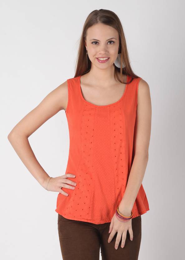 Bringing in some elegance along with a cool attitude, this orange top from Mineral is sure to create a beautiful look on you. With hakoba and self print, this cotton top will go well as a summer outfit with jeans and peppy sandals.