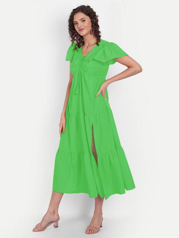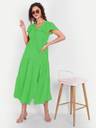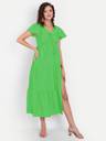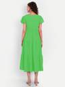 MINGLAY Women Solid Green Amrican Crepe Cap Sleeve A-Line Dress