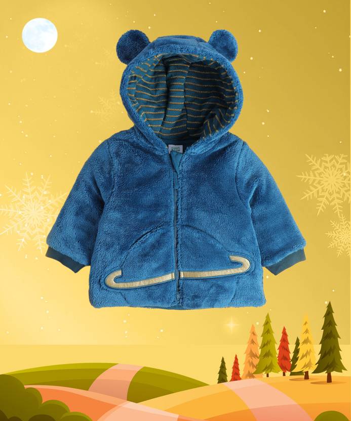 Introducing Baby Boys Printed Jacket for your young lad to rock this season. Available in sizes 0-24 months, suitable for baby boys. This jacket has furry texture. Made out of 100% Polyester and comes in regular fit with full sleeves. Easy to clean and quick to dry, making the top machine wash friendly. This jacket is a perfect choice for your child's daytime, playtime and party wear. Ranging from our winter 23 collection, which is priced attractively and crafted with love. Get this roundneck jacket to style your little lad in the season's most prefered colours.