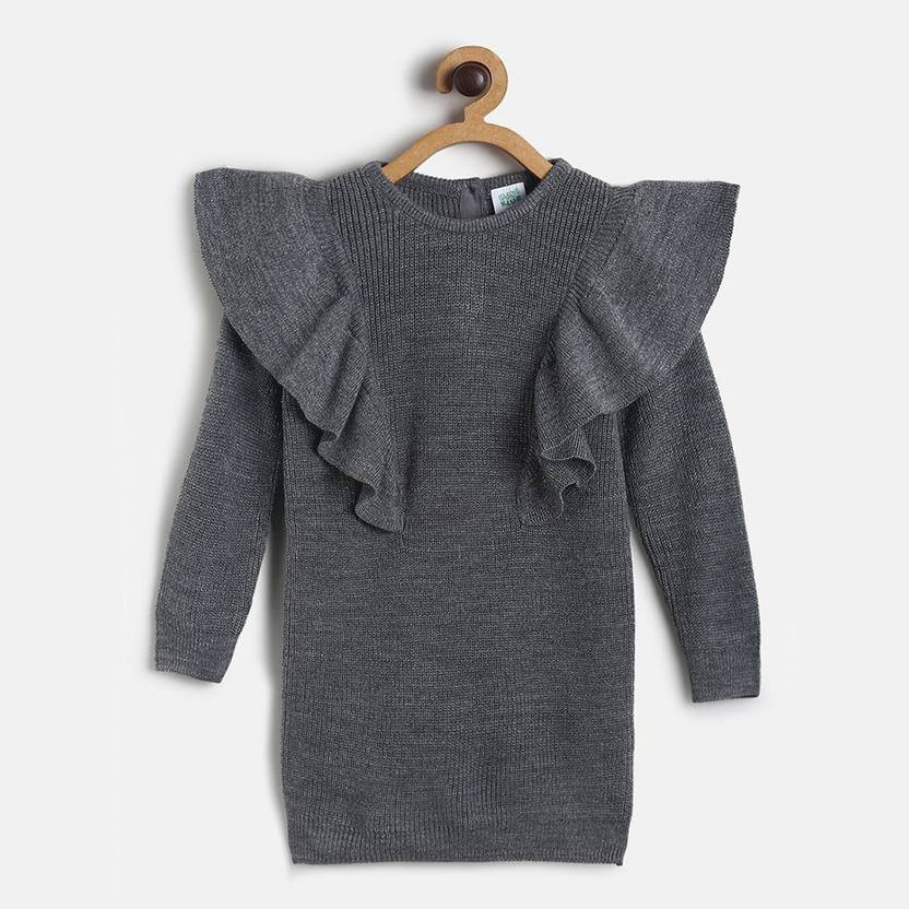 MINI KLUB Midi/Knee Length Casual Dress (Silver, Full Sleeve)