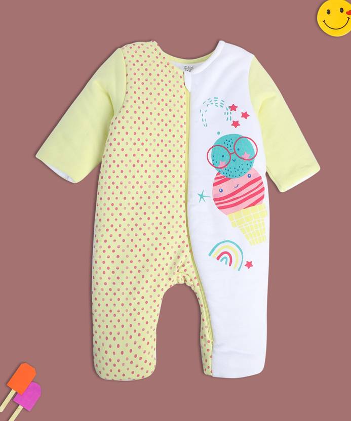 MINI KLUB Romper For Baby Girls Casual Printed Cotton Blend (Multicolor, Pack of 1)