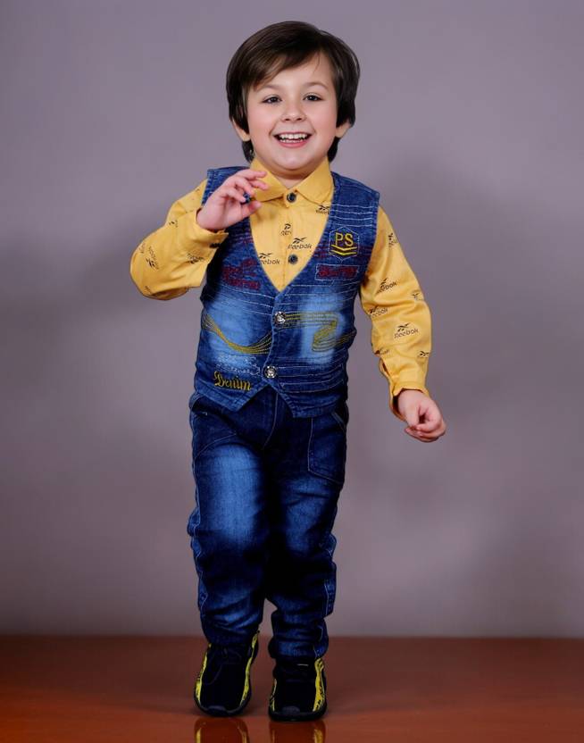 This product is made from Cotton blend & denim. We brings exclusive festive and party wear range for young boys. The range has been carefully crafted keeping the comfort of kid. So, grab this set of Jacket, Shirt and Jeans and make your little boy center of attraction.