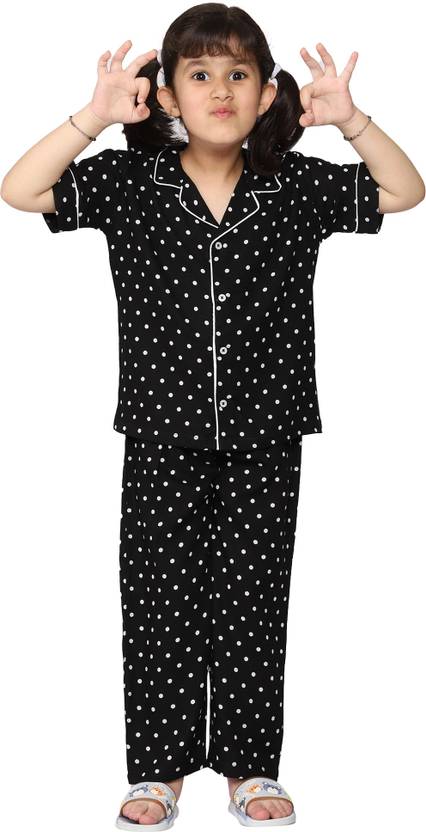 mininest Full Sleeves Polka printed Night Suit set for Boys & Girls - Black.