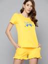 This co-ord set consists of T-shirts and ShortsYellow minion printed T-shirt ,has a round-neck, short sleevesYellow solidnbsp;shorts, has drawstring closure, 4 pockets and cuffed hems.