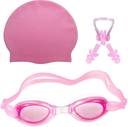 MINISO /\/\ ||||os :) HIGH Quality Goggles Silicone Cap 1 Nose Clip + 2 Ear Plugs PINK Swimming Kit Swimming Kit