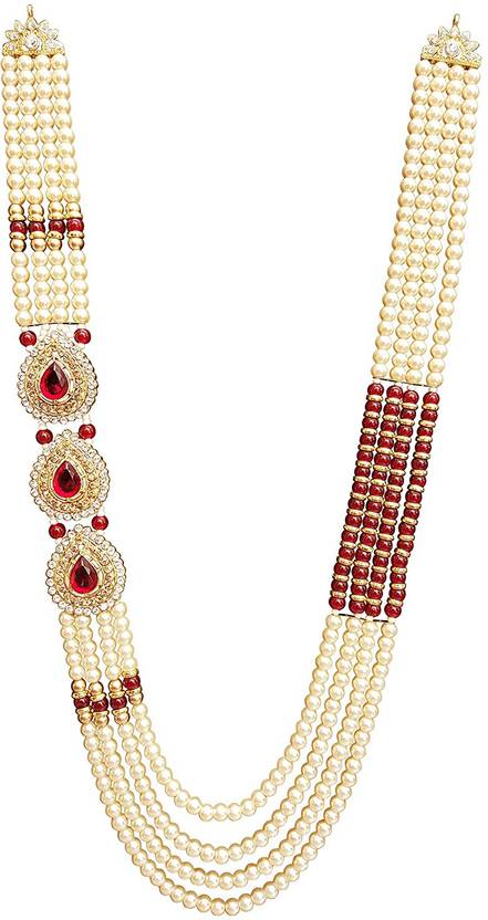 4 Layers 3 Sided Broach White - Maroon Dulha Mala for Engagement - Wedding
