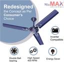 MinMAX Winger ultra high speed with 24 Months Warranty Energy Saving 1200 mm Ceiling Fan (Silver Blue | Pack of 2)
