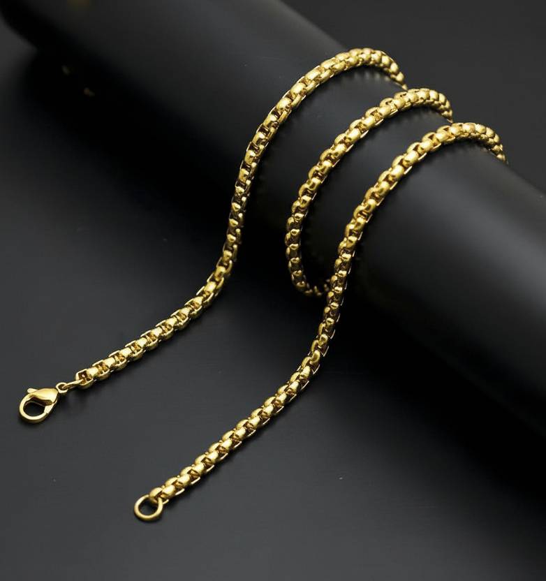 Pure Stainless Steel Gold 4mm Thick Round Box Necklace Chain