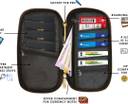 Detachable Wristlet (20cm), 4 Passport Slot, 4 Bank Cards Slot, 2 Zip Pockets (Key, Coins, Small Gadgets), 1 Zip Cash Compartment, Pen Holder, 1 Bording Pass / Cheque Book Slot, Phone, Water Repellent