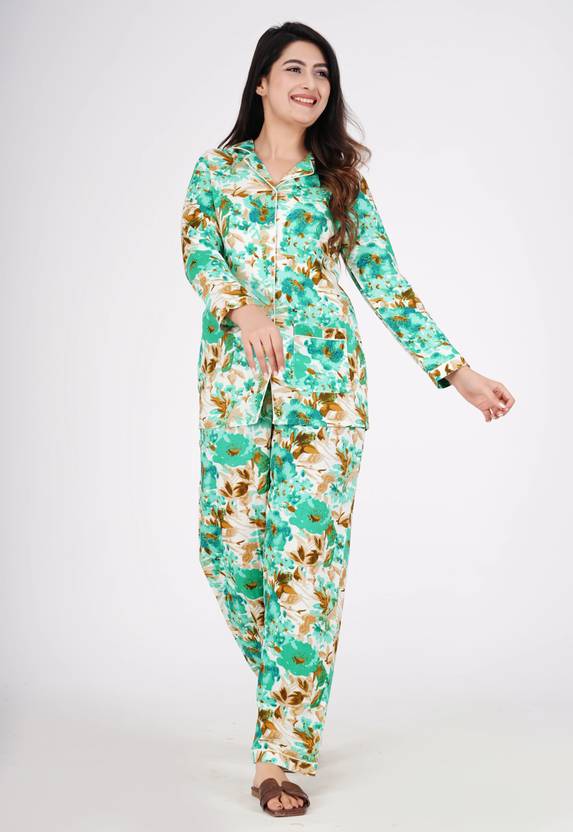 Either it's work from home or rest from home, all you need is Animesh soothing elegant night suits. This Printed night suit consists of a Collared neck ethnic top with pajama. A perfect charming printed Rayon night suit for your tiny naps. Wear it from morning to night or night to morning.