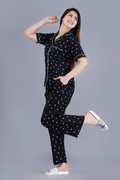 Either its work from home or rest from home, all you need is MintMariesoothing elegant night suits. This Printed night suit consists of a round neck ethnic top with pyjama. A perfect charming printed cotton night suit for your tiny naps. Wear it from morning to night or night to morning.