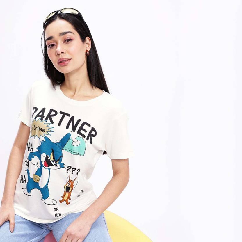Minute Mirth Ladies Tom & Jerry Printed Half Sleeve Top