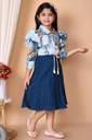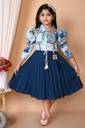 MIR FASHION Indi Girls Below Knee Party Dress (Blue, Half Sleeve)
