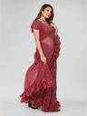 A saree is a timeless and versatile garment, typically measuring Blouses in the 38 to 42 inch size range are designed to fit medium to large bust sizes , Some blouses also include padding for added shape and support, while others are unpadded for a more natural fit. The choice of fabric plays a crucial role in the overall look and comfort of the saree. Popular fabrics AS SUPERNET which are known for their luxurious texture and are ideal for weddings and special occasions. Also NET provides a sleek, crinkled texture, adding a contemporary touch , ideal for summer wear.