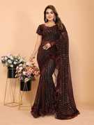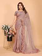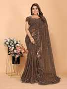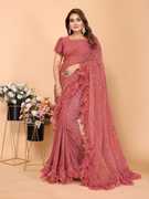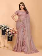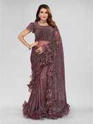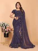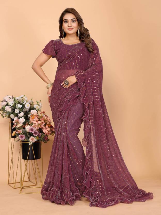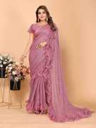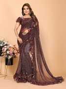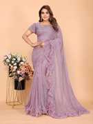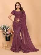 Sakifashion Embellished Bollywood Supernet Saree (Purple)