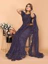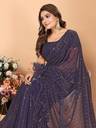 Embellished Bollywood Supernet Saree (Dark Blue)