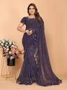 Sakifashion Embellished Bollywood Supernet Saree (Dark Blue)