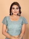 A saree is a timeless and versatile garment, typically measuring Blouses in the 38 to 42 inch size range are designed to fit medium to large bust sizes , Some blouses also include padding for added shape and support, while others are unpadded for a more natural fit. The choice of fabric plays a crucial role in the overall look and comfort of the saree. Popular fabrics AS SUPERNET which are known for their luxurious texture and are ideal for weddings and special occasions. Also NET provides a sleek, crinkled texture, adding a contemporary touch , ideal for summer wear.