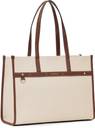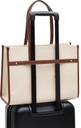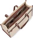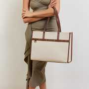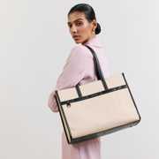 The Crusie canvas tote bag checks all the right boxes when it comes to choosing the perfect summer bag. Featuring a structured silhouette it boasts ample space to hold all your essentials. Its secure zipper closure keeps your essentials safe. Inside, is a laptop compartment, three card slots, four slip pockets, a zipper pocket, two pen slots, and a handy key holder. The striking combination of black accents and beige canvas creates a stylish appeal to all your summer looks.