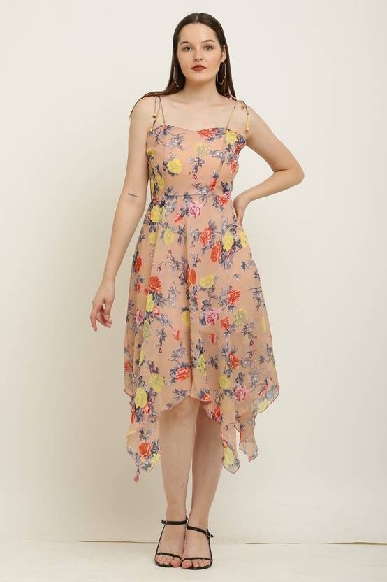 HEAVENS CREATIONS Women High Low Beige Maxi/Full Length Dress