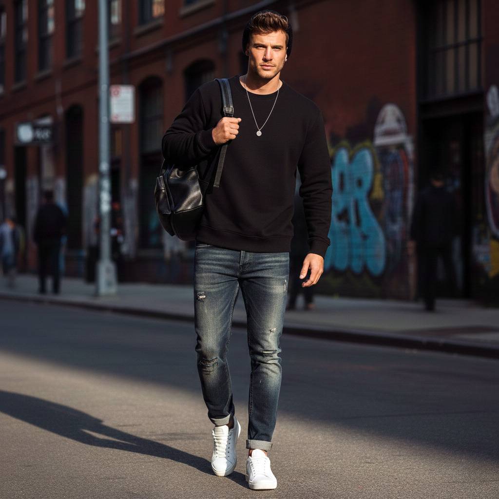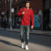 This men's sweatshirt features a classic crewneck design in a versatile colours, offering a comfortable and relaxed fit. Crafted from a soft fabric, it is ideal for everyday casual wear. The simple, solid design makes it a foundational piece for various outfits. Compatible products include: distressed blue jeans, white sneakers, black beanies, and black backpacks.