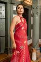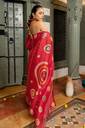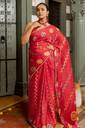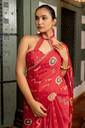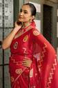 Block Prints, Occasional Sari/Party Sari, Red, For Daywear, Lace, Everyday Casual