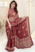 MIRCHI FASHION presents a premium quality Indian traditional ethnic wear chiffon saree, designed to add glamour to your wardrobe. This branded saree features a stunning dark wine and white batik block print on high-quality chiffon fabric, ensuring softness and comfort for all-day wear. The saree measures 6.30 meters, including blouse fabric that can be stitched to fit sizes 32 to 42 inches. All our products are manufactured to standard dimensions and quality-checked for your satisfaction. Ideal for festivals, parties, family gatherings, and business functions, this saree suits women and girls of all ages. It’s perfect for anyone looking for sarees for women, saree, or sarees. Our sarees for women 2024new feature the latest trends, making a statement for those who choose this saree for women. Plus, buying from MIRCHI FASHION means you're getting an affordable, branded product that guarantees quality and style. Part of our sarees 2024 collection, this chiffon saree—also known as Sadi—serves as both a simple saree and a fancy saree. Perfect for daily wear sarees, chiffon saree party wear, or party wear sarees, it fits any wardrobe need. Explore our new saree collection and find the perfect sarees 2024 model for any event. With a versatile printed saree design and a contemporary chiffon saree design 2024, this saree stands out beautifully. Add this premium chiffon saree to your collection and enjoy compliments on your next ethnic look. Ideal for those seeking a new saree, ladies saree, or new design saree, this branded saree blends tradition with modern fashion, featured in our latest sarees 2024 lineup. From a simple saree 200 300 range to a premium choice, this Saari is a must-have. Stay ahead with trending sarees 2024 and enjoy the elegance of a Sare. Our collection includes chiffon saari, floral print saree, stylish sarees, plain sarees, and party wear sarees, perfect for any occasion.