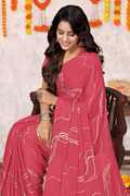 Part of our sarees 2024 collection, this chiffon saree—also known as Sadi—serves as both a simple saree and a fancy saree. Perfect for daily wear sarees or chiffon saree party wear, it fits any wardrobe need.