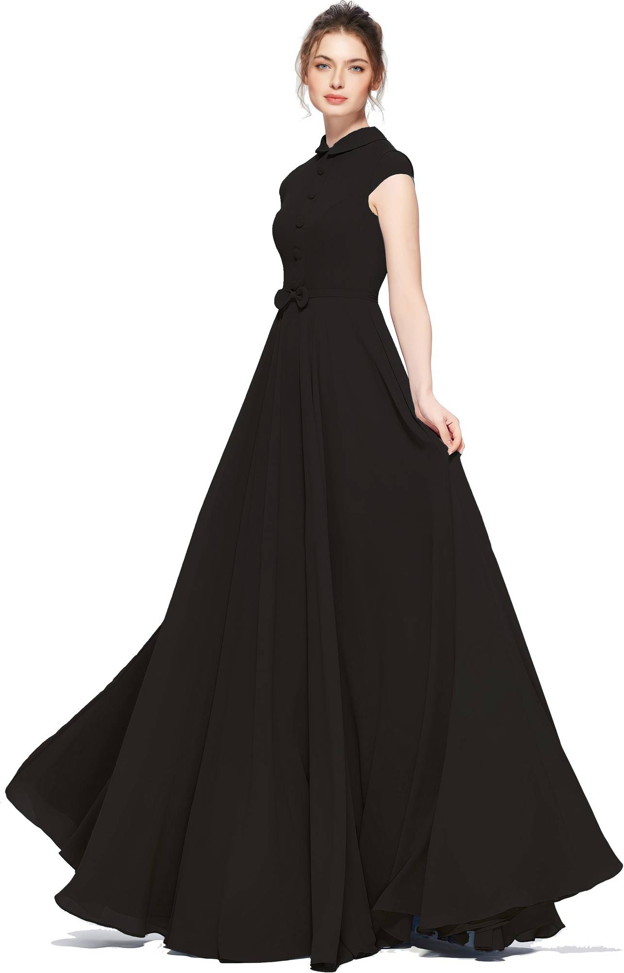 Solid Georgette Stitched Flared/A-line Gown (Black)