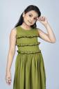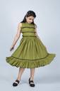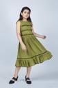 Spruce up your little girls wardrobe with this knee length dress from Mirrow Trade on Flipkart. This stylish dress is perfect for a party, wedding, day out with friends or night of get-togethers. Definitely your eyes are hooked to this adorably beautiful fit and flare dress. With a soft rayon fabric, trendy yet pleasant olive colour, round neckline, sleeveless, self-fabric belt, frilled hemline and delicate ruffle trim details on yoke throughout, this knee length dress will ensure your angel stays on-trend all evening. Styling it with a pair of black strappy flats and hairband is a great idea.