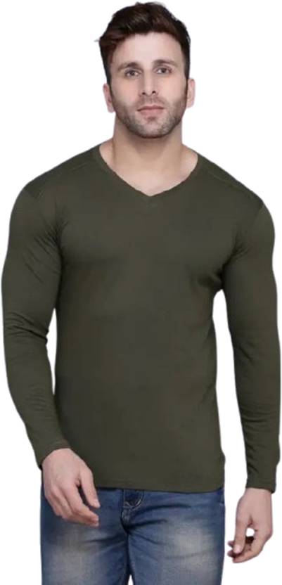 Mishitha Solid Men V Neck Dark Green T-Shirt
